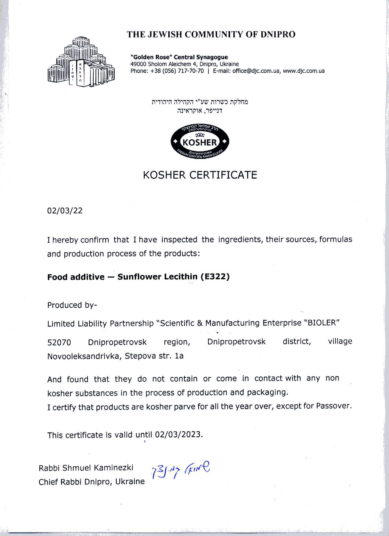 Lecithin (essential phospholipids) is an ecologically pure natural product extracted from phosphatide concentrate of sunflower seeds. As a feed additive, it increases the energy level of the diet of animals, intensifies anabolic processes in the organisms of animals and improves immunobiological activity owing to the consumption of components of lecithin (phosphatidylcholine, unsaturated fatty acids and others).